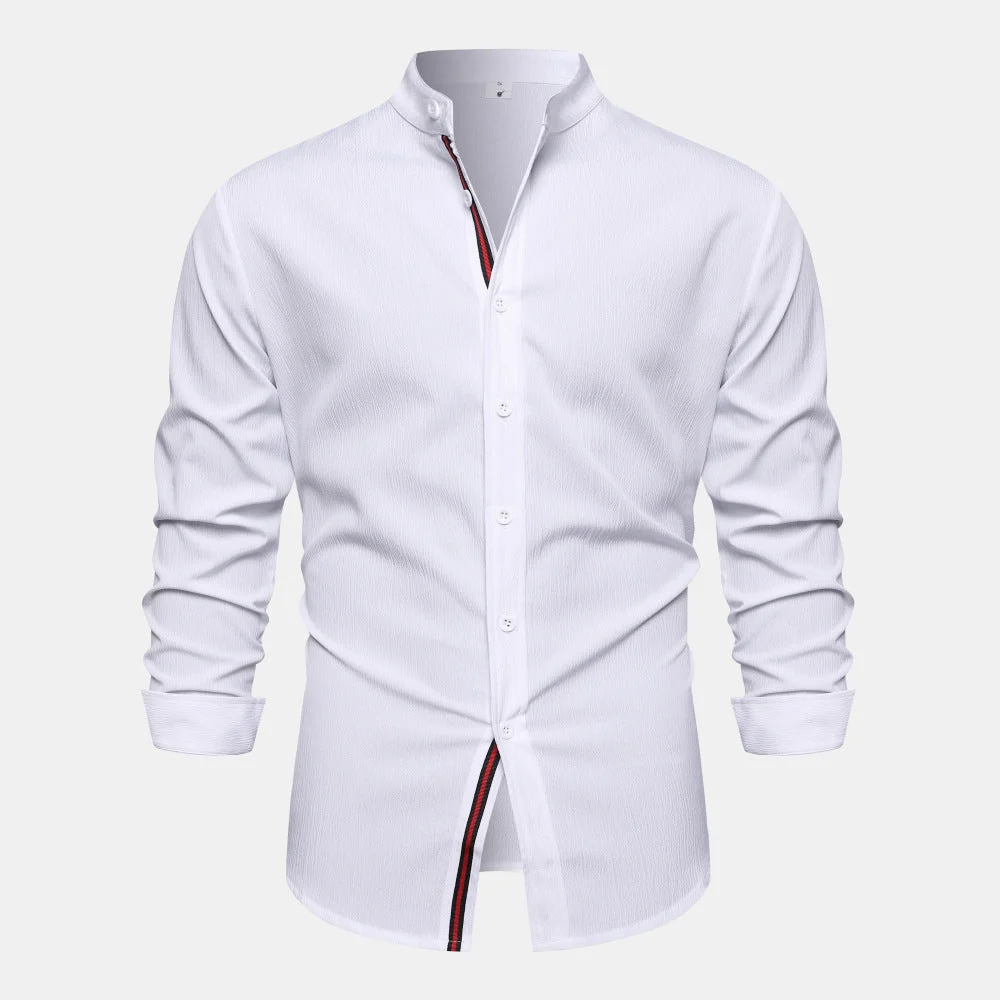 2023 Fashion Solid Color Stand Collar Casual Long Sleeve Cotton and Linen Shirt