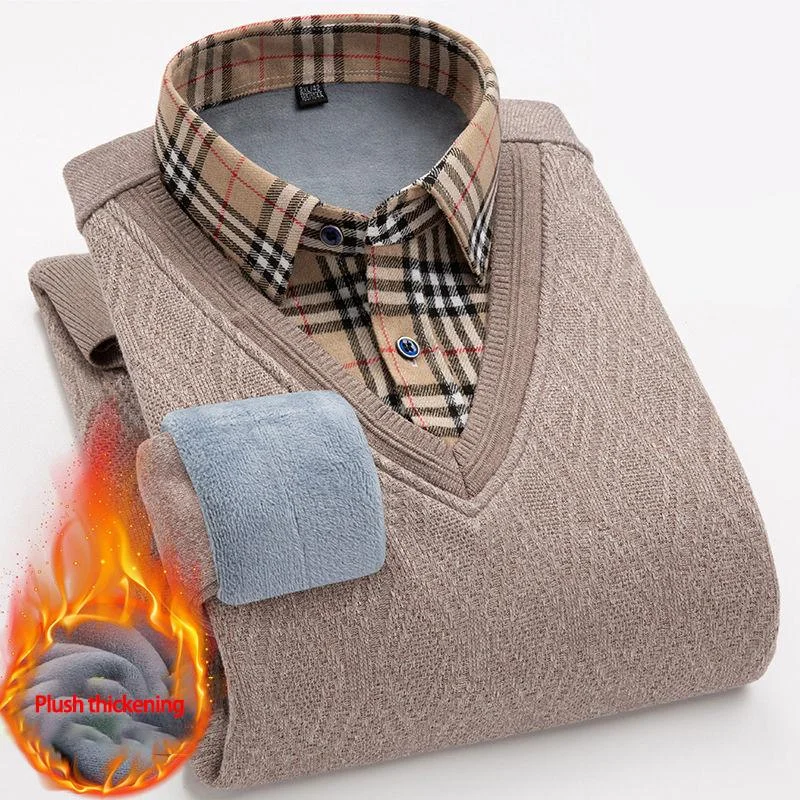 Classic plus velvet fake two-piece suit