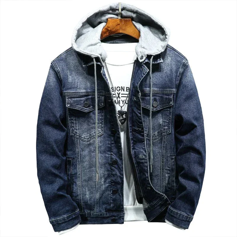 Elevate your retro-inspired style to a new level with the Cotton Hooded Denim Jacket. This classic denim jacket features a removable cotton hood with two front hand pockets for an iconic silhouette, while the lightly padded lining keeps you warm all day long.