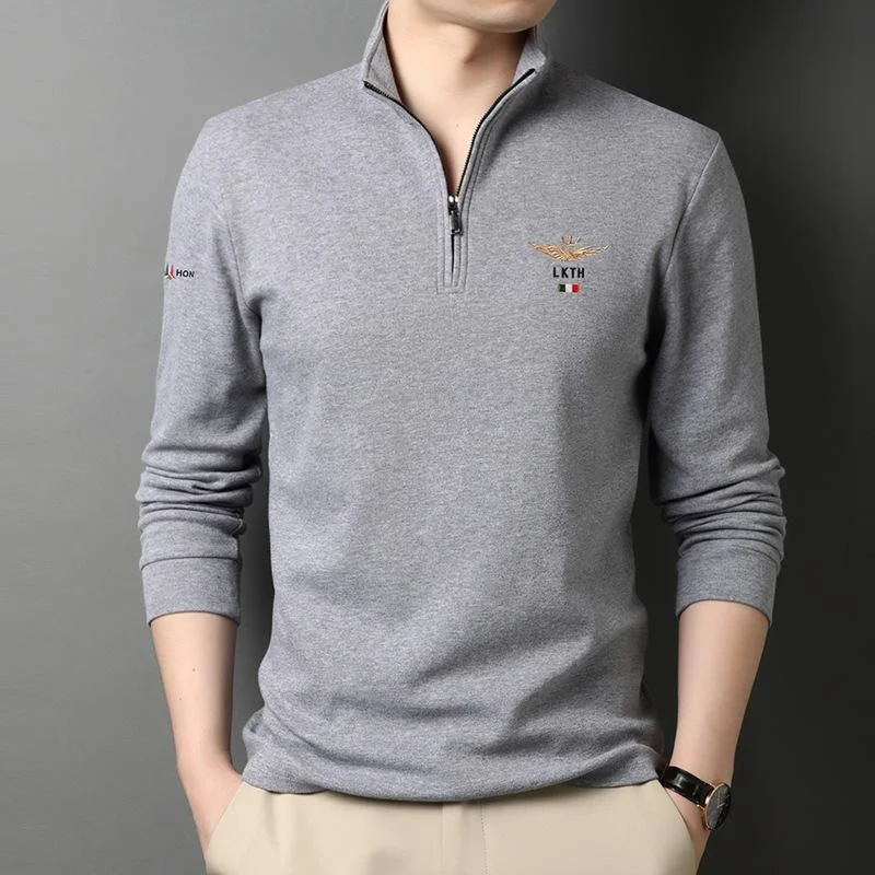 Embroidered Polo Shirt With Zipper Collar