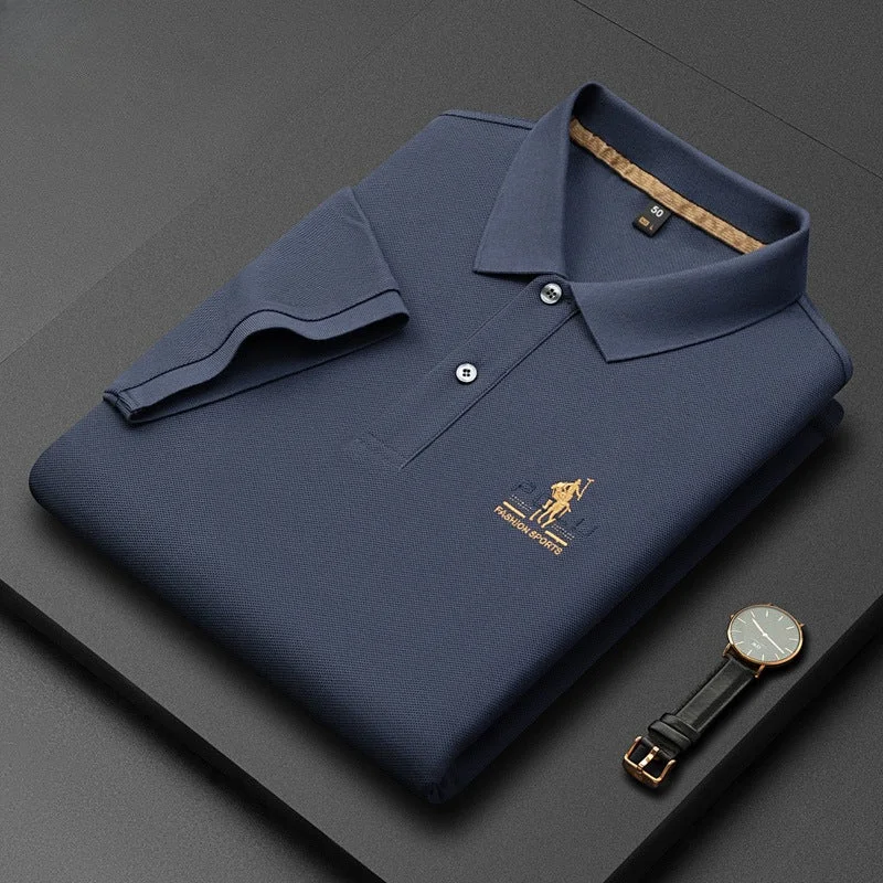 Men's 100% Cotton Lapel Solid Color Polo Shirt