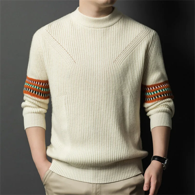 Men's 100% wool round neck trendy sweater