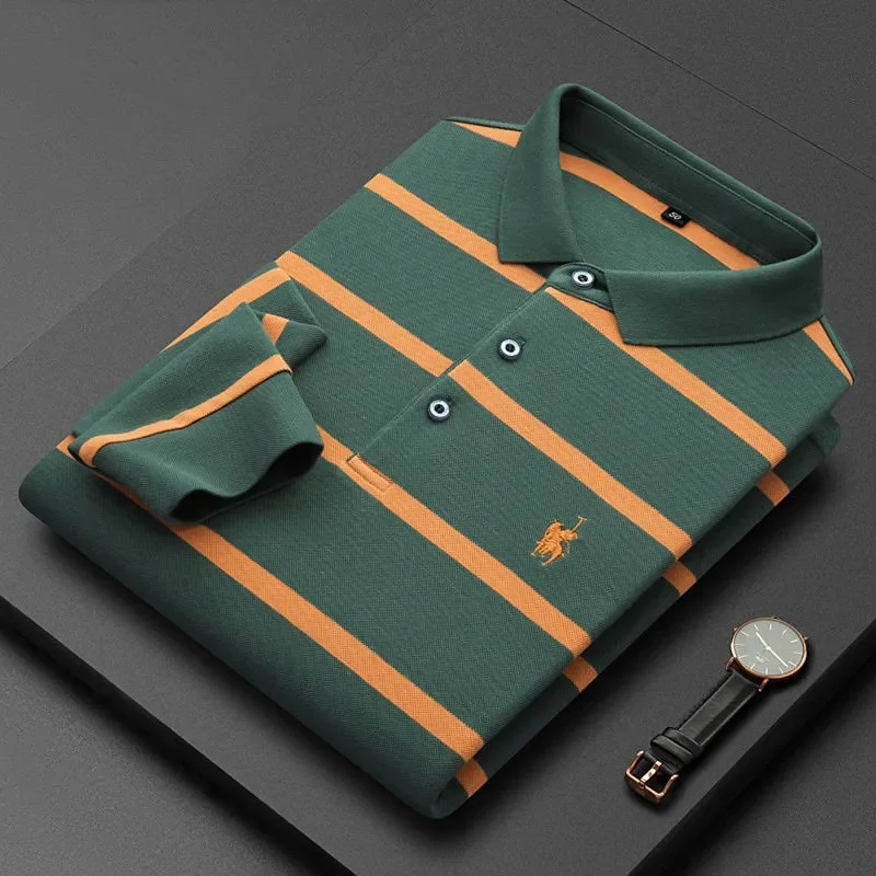 Men's Fashion Striped Polo Long Sleeve T-Shirt