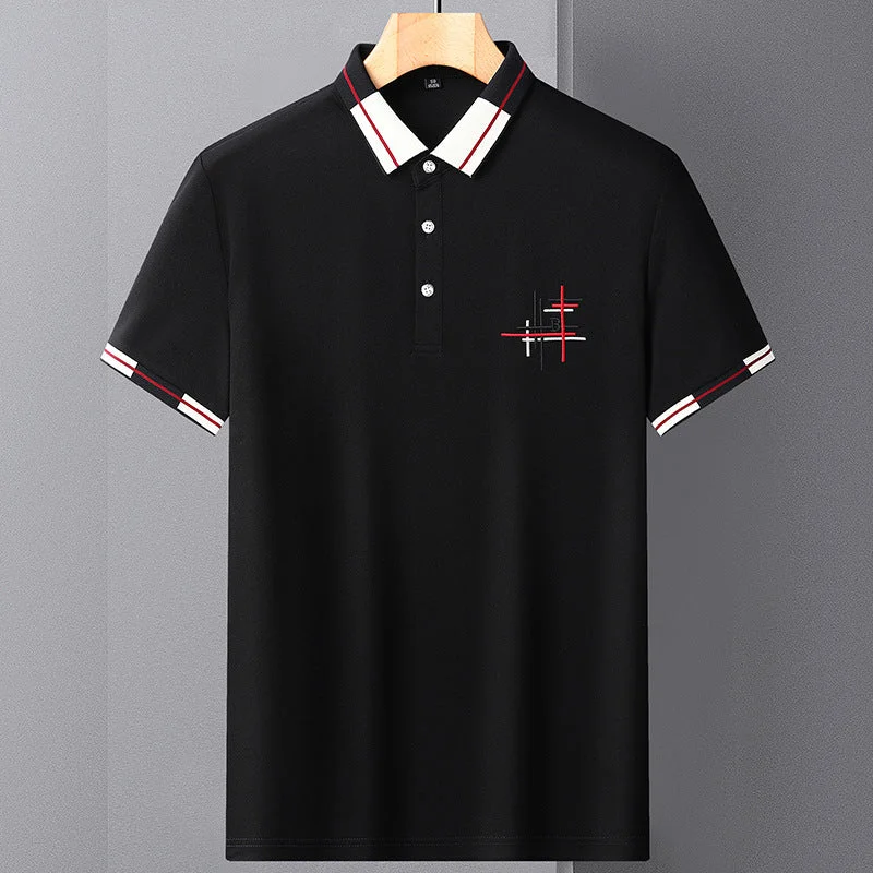 Men's High-end Mulberry Silk Embroidered Ribbed Lapel Casual Polo Shirt