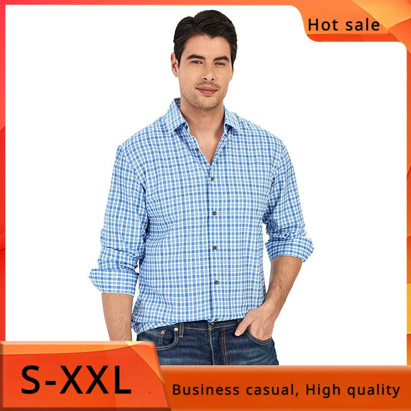 Men's Printed Long Sleeve Plaid Shirt