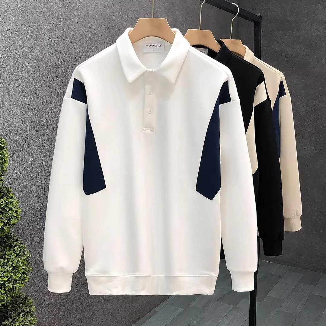 New Men's Patchwork High-end Lapel Long-sleeved Polo Shirt