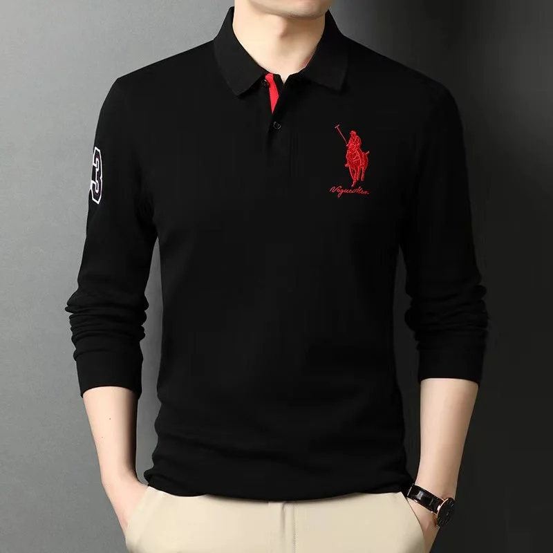 Solid color embroidered business casual polo shirt