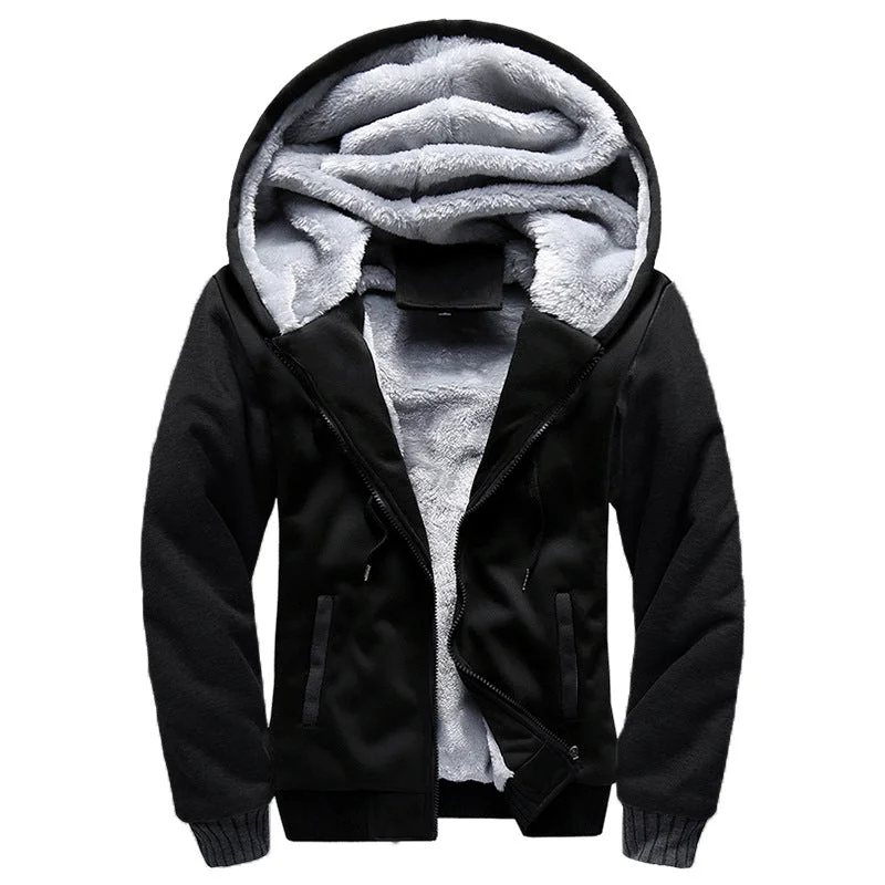 Winter New Solid Fleece Zip Hoodie